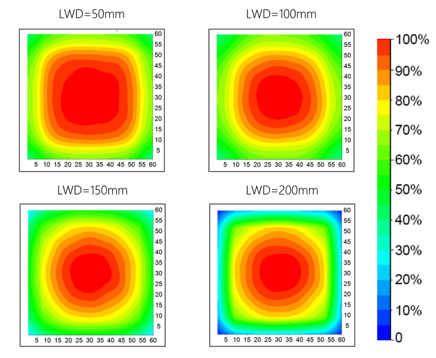 working distance and illumination distribution