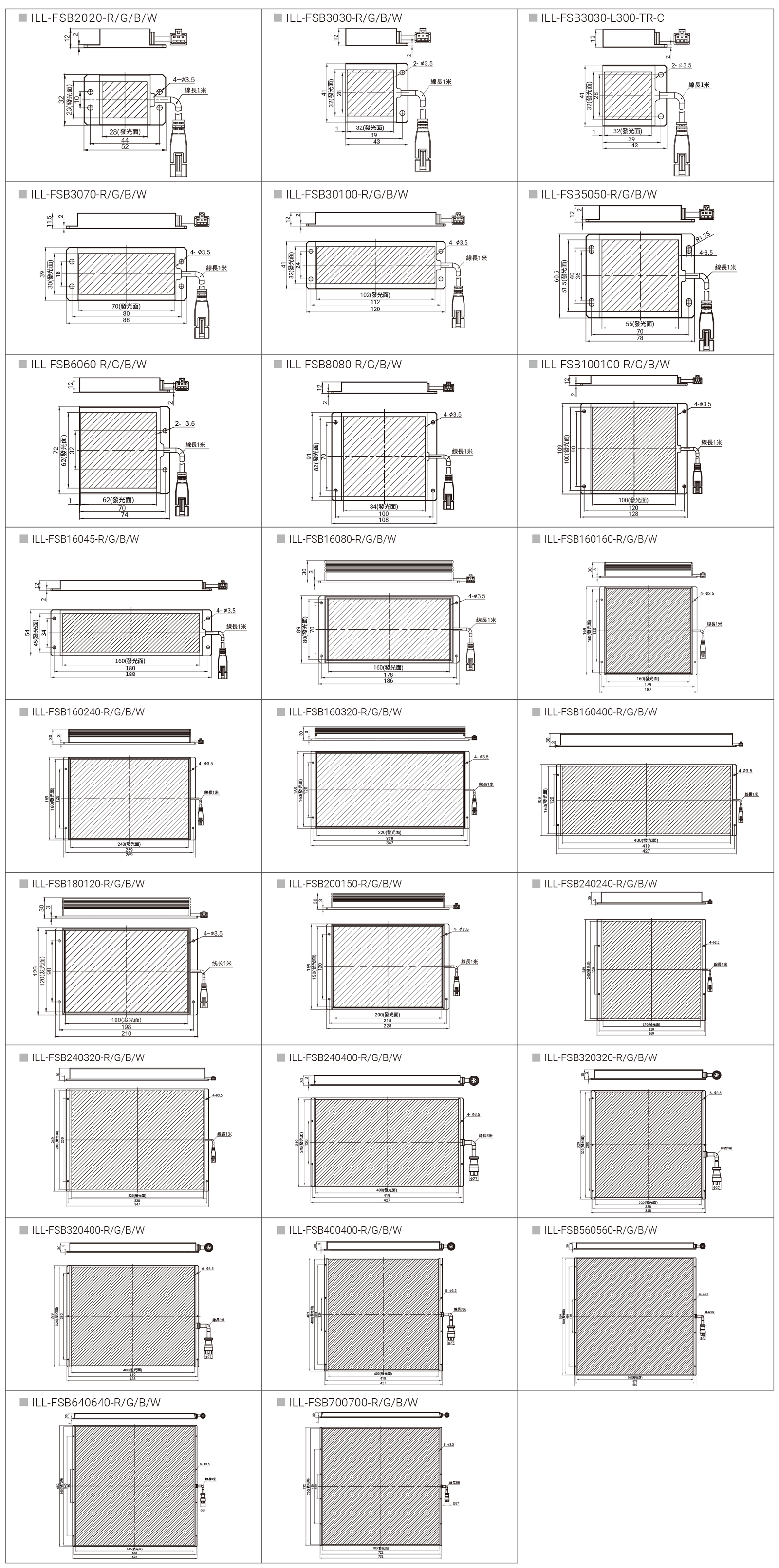 | ILL-FSB320320-R/G/B/W | 24V | 60W* | 72* | 345 | 330 | 27.5 | ILL-FCC 恆流系列 |