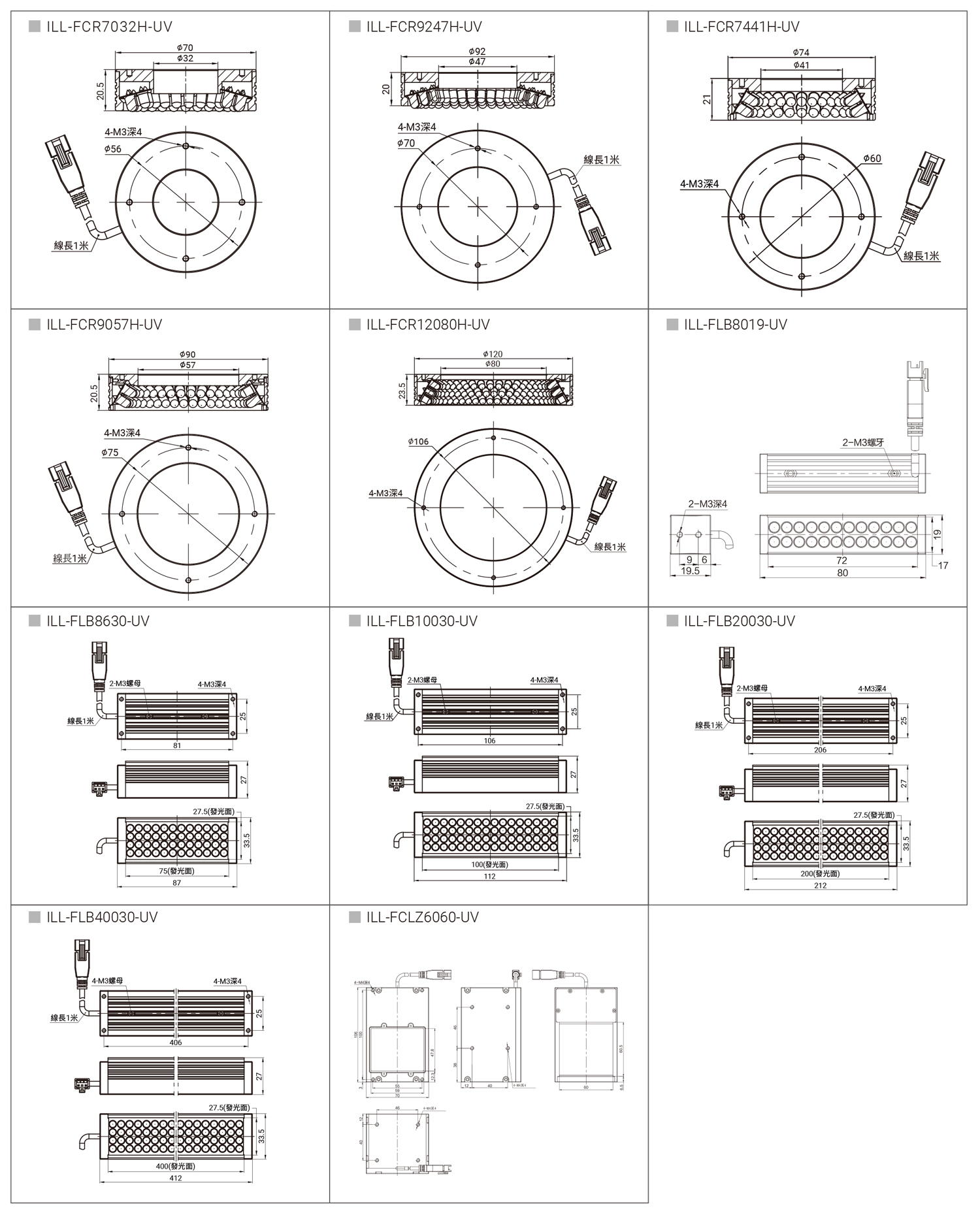 | ILL-FCR7032H-UV | 24V | 3.9W | 120 | 單Channel<30W, 總Channel 加總<50W 可用以下控制器 ILL-DP2454-2CR-1 ILL-DP2454-4CR-1 |