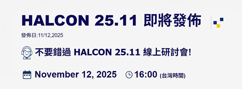 HALCON 25.11 版本於 2025 年 11 月 12日正式發布,搶先了解這款強大標準軟體的全新功能與應用案例,以下是主要特色: |