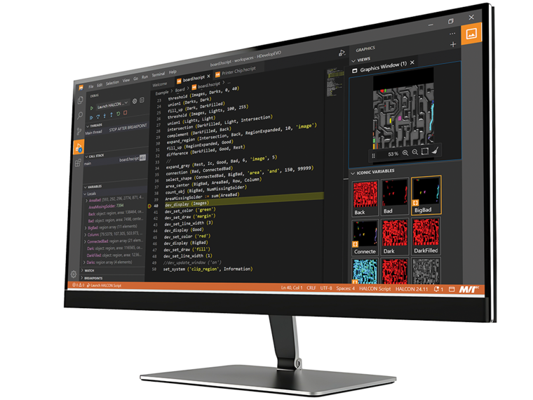 本次版本發行還納入了幾項優化,讓您在使用 HDevelopEVO 進行作業時更有效率。其中一個新的腳本轉換器簡化了現有 HDevelop 程式和範例程式移轉到 HDevelopEVO 的流程,它支援逐步轉換,並能讓使用者重複利用既有的程式碼。此外,透過互動式工具的加入,實用性也獲得了提升:例如將即時直方圖整合到門檻值運算元中,讓參數調整更為直覺;以及當滑鼠游標停留在影像上時,會即時顯示灰階數值,以便進行瞬間的像素等級分析。總體來說,這些功能簡化了程式碼移轉、加快了故障排除的速度,並讓日常的影像處理工作流程更加順暢。。